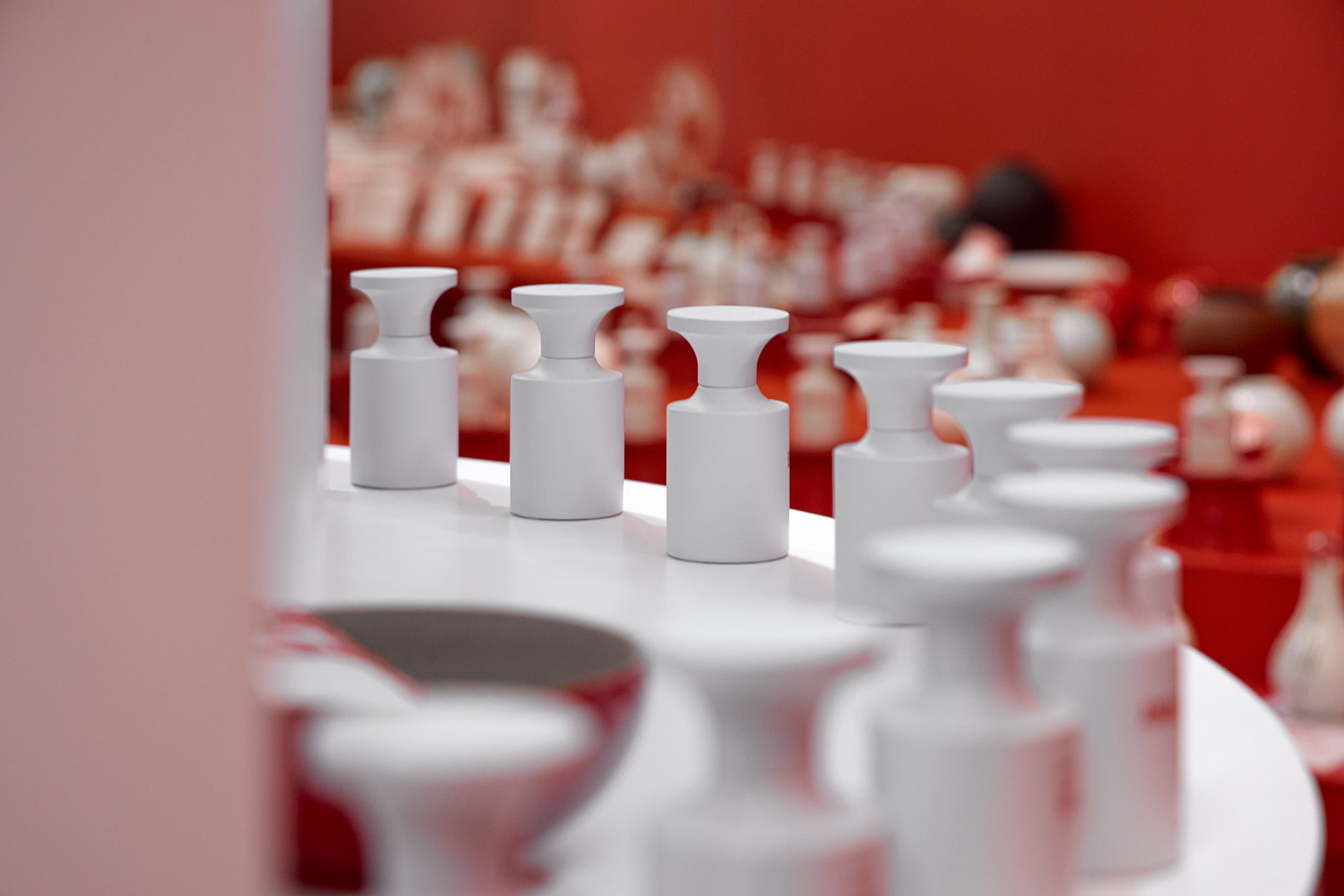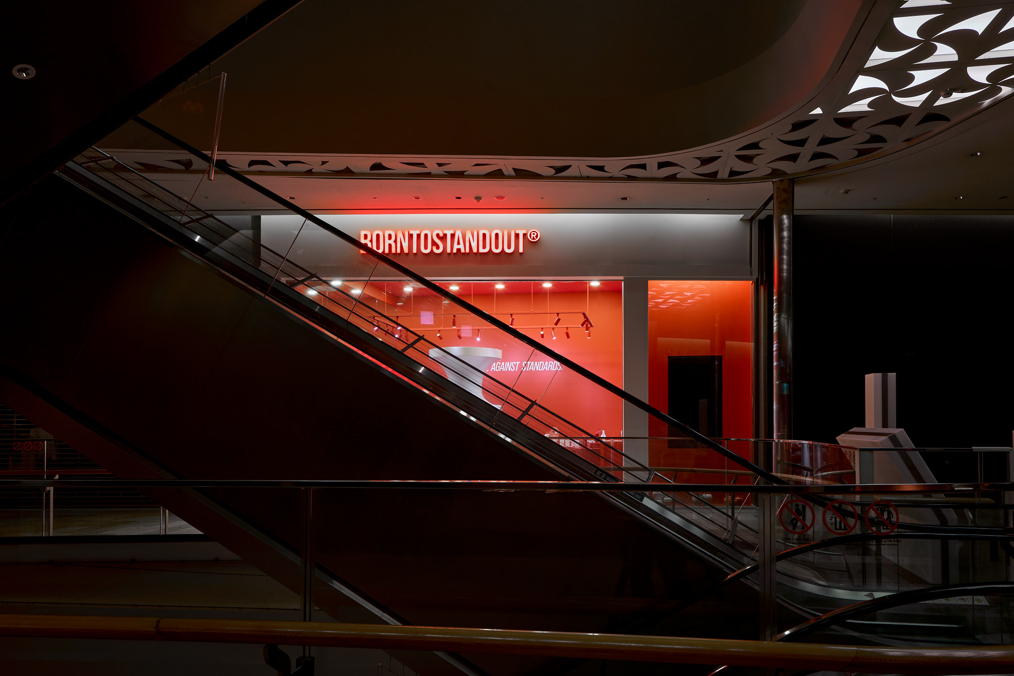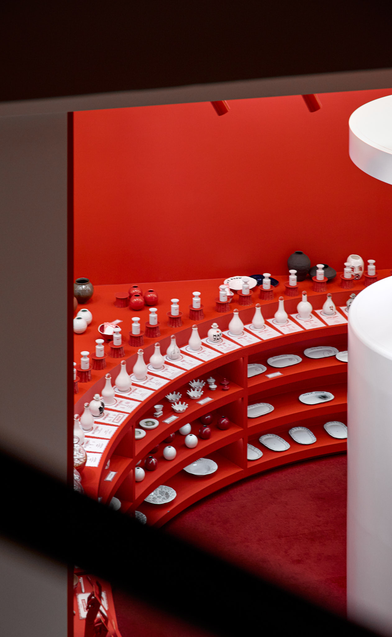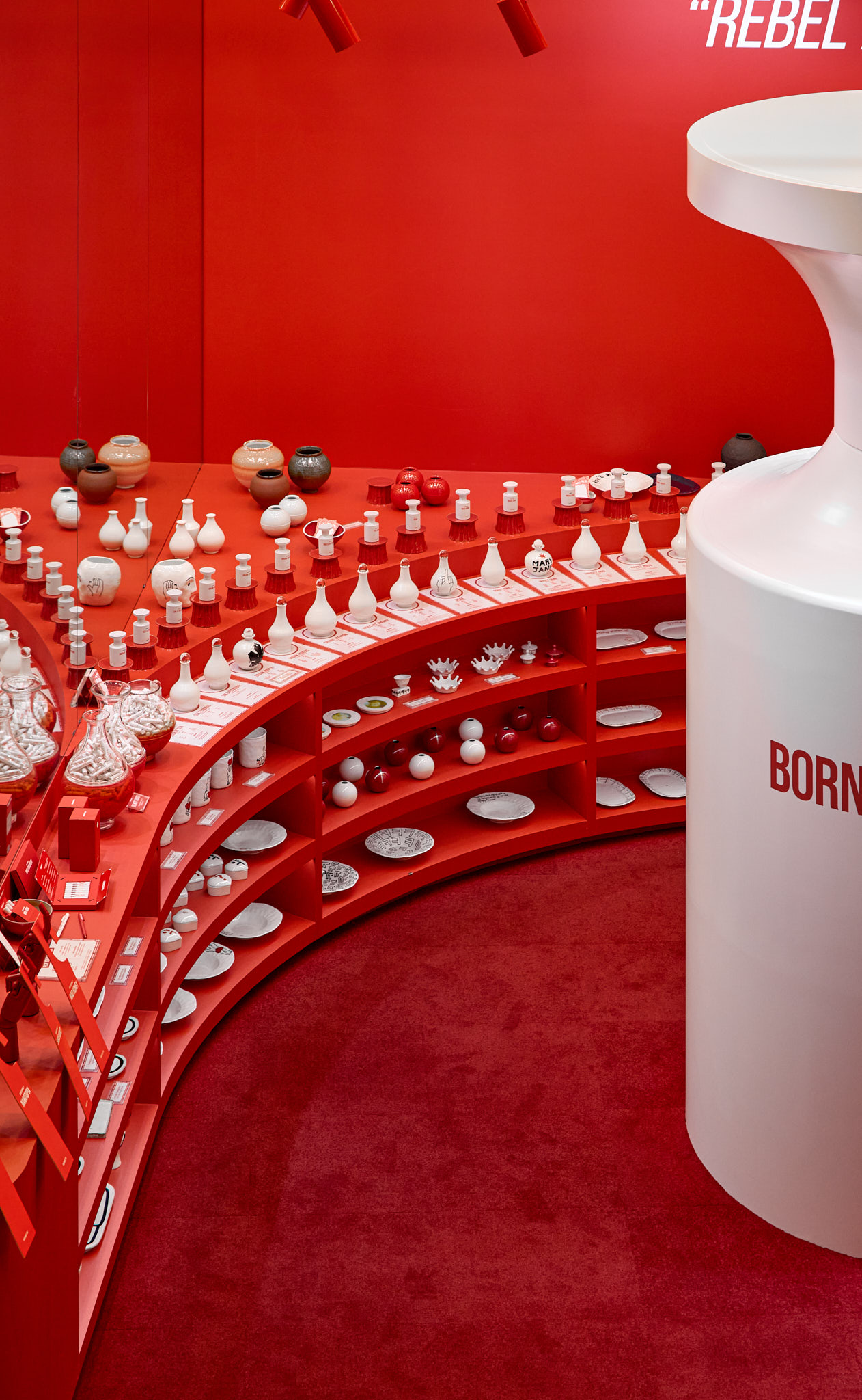 판매할 제품 외에 모든 요소를 붉게 물들이고 있는 현장이다. 기존 백화점 스포트라이트 조명(블랙)도 제거하고, 우리 브랜드의 키컬러에 맞추어 커스텀 제작. 이게 되네?